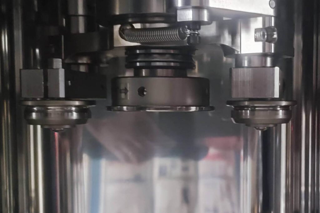 缶巻締機は、缶に内容物を充填した後、缶内を真空状態にしてフタを密閉するための機械です。